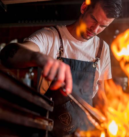“Die Holzkohle ist der Beginn von Allem. Sie geben der Kreation jedes Gerichts eine Form, sei es während der Vorbereitung oder der letzte Touch am Schluss.”