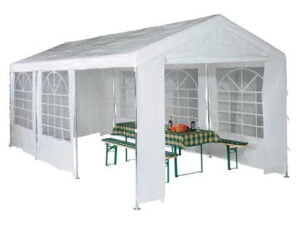 Zum Aufstellen des Zeltes müssen Sie ausreichend Zeit einberechnen. Für die Zelte bis 4×6 Meter sind mindestens zwei Personen erforderlich, bei den grösseren mindestens vier Personen. Legen Sie zuerst alle Einzelteile aus und sortieren Sie diese nach Nummern. Wählen Sie eine ausreichend grosse, flache Stelle für den Zeltaufbau, damit die benötigte Stabilität gewährleistet ist. Bei der mitgelieferten Aufbauanleitung wird der Aufbau genau beschrieben. Sollte diese mal verloren gehen, haben wir jede Anleitung digital zur Verfügung und können Ihnen diese umgehend zustellen. Der erste Aufbau dauert erfahrungsgemäss mindestens zwei Stunden. Sobald der Aufbau routinierter abläuft, dauert es je nach Zeltgrösse, um die 1 – 1.5 Stunden.