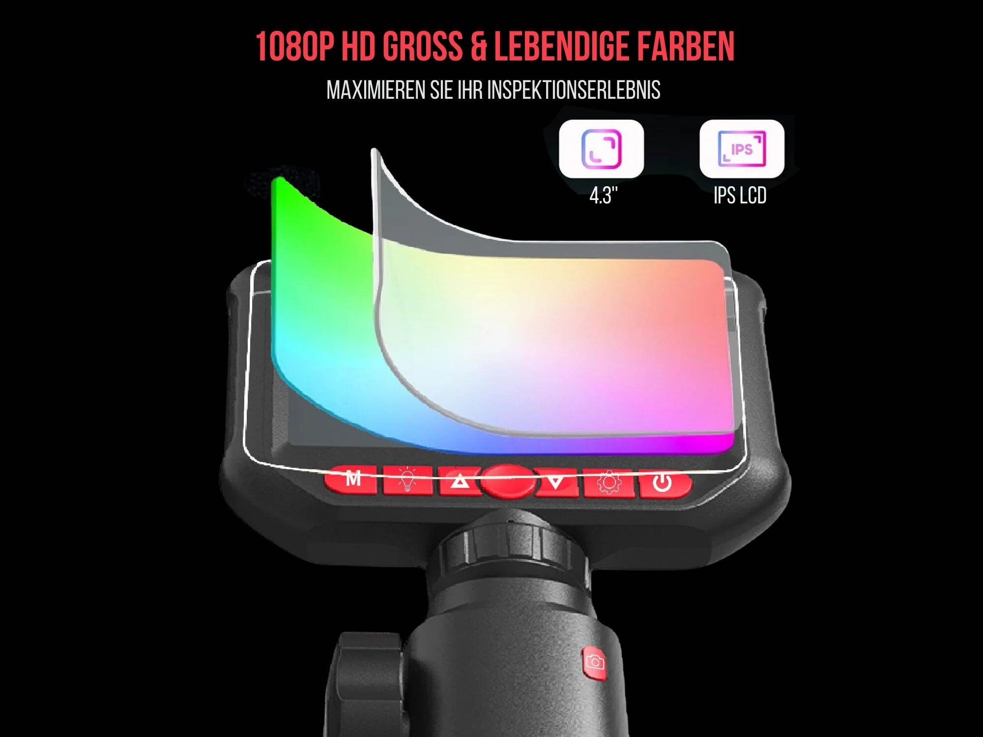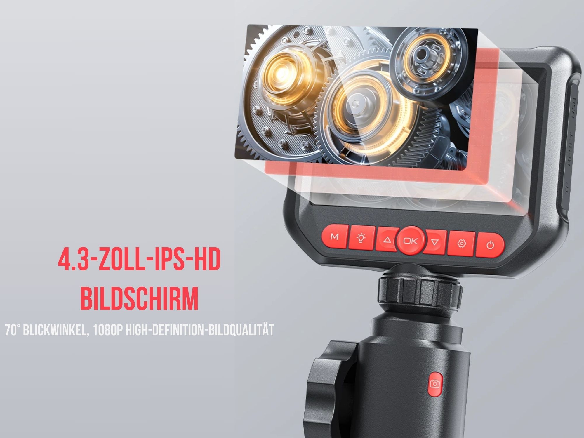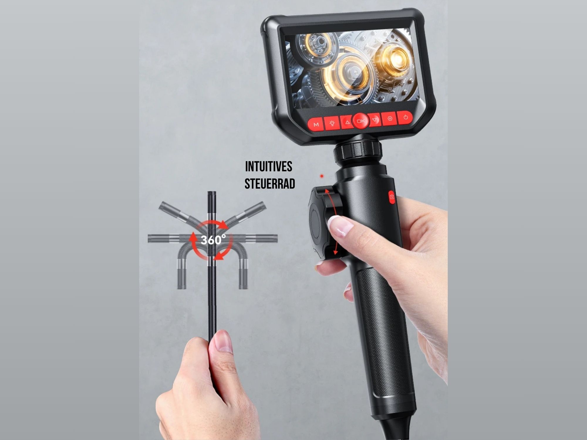 Entdecken Sie die Welt der detaillierten Inspektionen mit unserem 360° Gelenk-Endoskop mit integriertem 4.3 Zoll IPS HD Bildschirm. Mit seiner flexiblen, 360° lenkbaren Sondenkamera bietet dieses Endoskop eine unübertroffene Manövrierfähigkeit, um selbst die schwer zugänglichsten Bereiche zu erkunden. Die hochauflösende IPS HD-Anzeige liefert gestochen scharfe Bilder und ermöglicht eine präzise Visualisierung der Untersuchungsfläche. Egal ob für industrielle Inspektionen, Fahrzeugwartung, Rohrleitungsüberprüfungen, Kontrolle von schwer zugänglichen Stellen in RC-Modellflugzeugen oder handwerkliche Anwendungen, unser 360° Gelenk-Endoskop ist das ultimative Werkzeug für präzise und zuverlässige Inspektionen. Tauchen Sie ein in die Welt der hochpräzisen Bildgebung und entdecken Sie Details, die bisher verborgen blieben.
