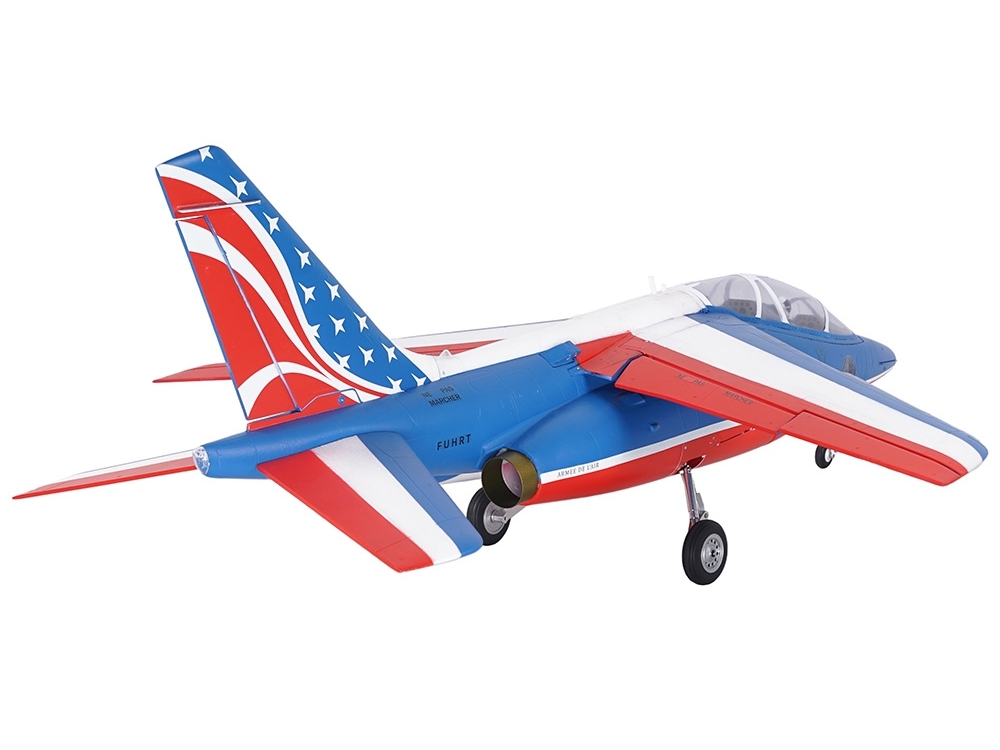 Der Alpha-Jet ist ein detailgetreuer, umfangreich ausgestatteter und vielseitig einsetzbarer EDF Jet-Trainer. Das Modell verfügt über viele Scale-Details wie funktionsfähige Flaps, Paneellinien, eine Antenne und eine transparente Kabinenhaube. Weiter verfügt dieser Jet über ein stabiles Einziehfahrwerk und eine LED-Beleuchtung.