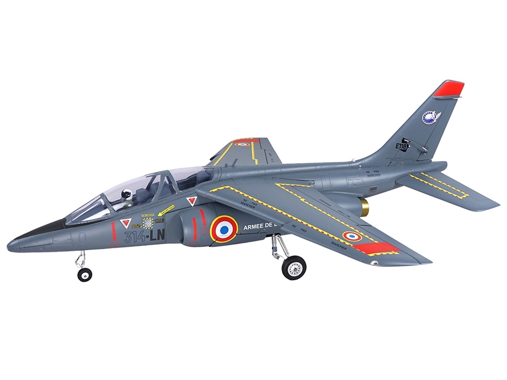 Der Alpha-Jet ist ein detailgetreuer, umfangreich ausgestatteter und vielseitig einsetzbarer EDF Jet-Trainer. Das Modell verfügt über viele Scale-Details wie funktionsfähige Flaps, Paneellinien, eine Antenne und eine transparente Kabinenhaube. Weiter verfügt dieser Jet über ein stabiles Einziehfahrwerk und eine LED-Beleuchtung.