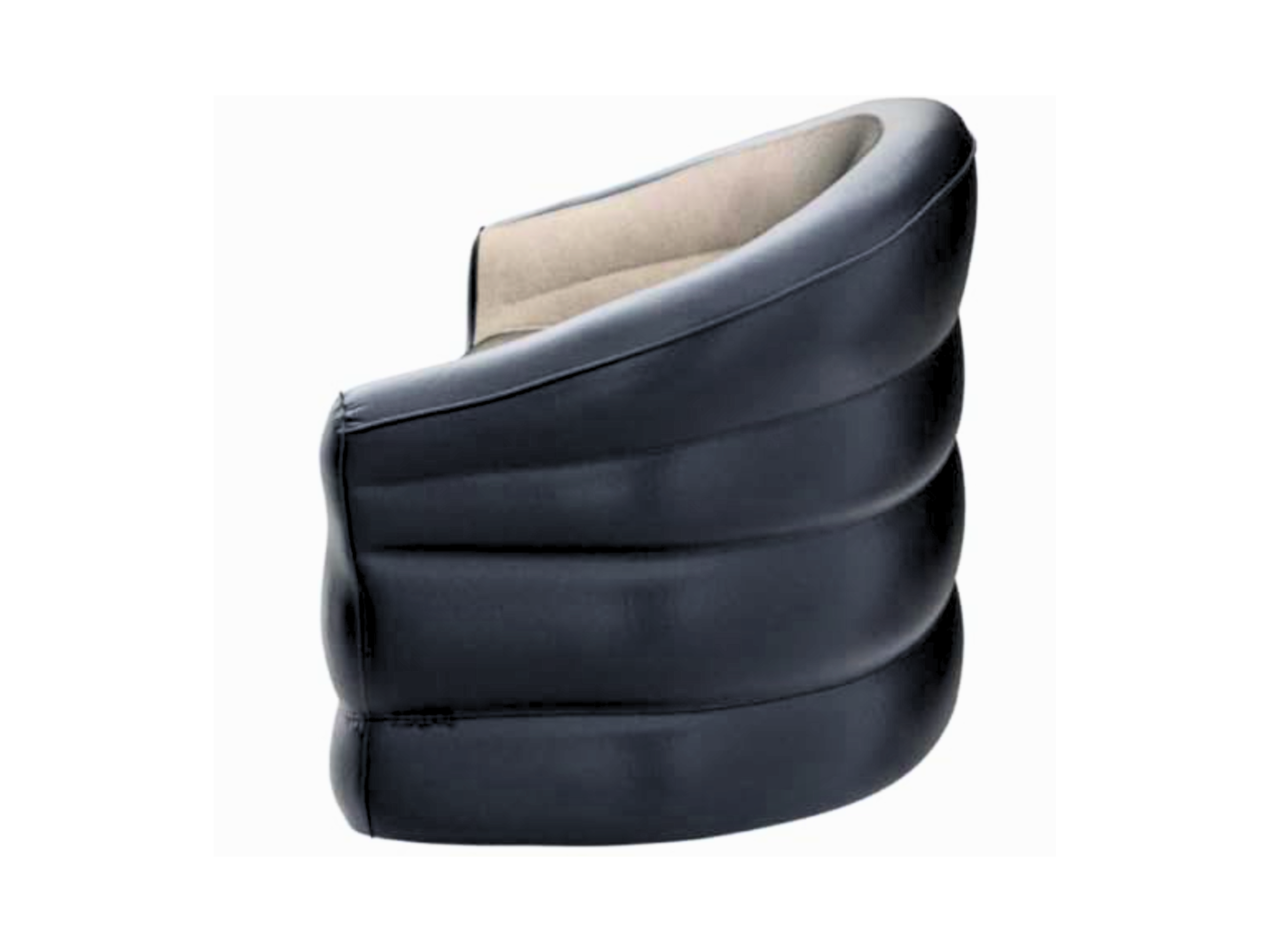 Unser aufblasbares Sofa in zeitlosen beige / schwarzem Design bleibt dank der beflockten Sitzfläche auch an heissen Tagen nicht an Ihrer Haut kleben. Die Masse von 138 x 87 x 71 bieten ausreichend Platz für zwei erwachsene Personen und bleiben gleichzeitig handlich verstaubar.