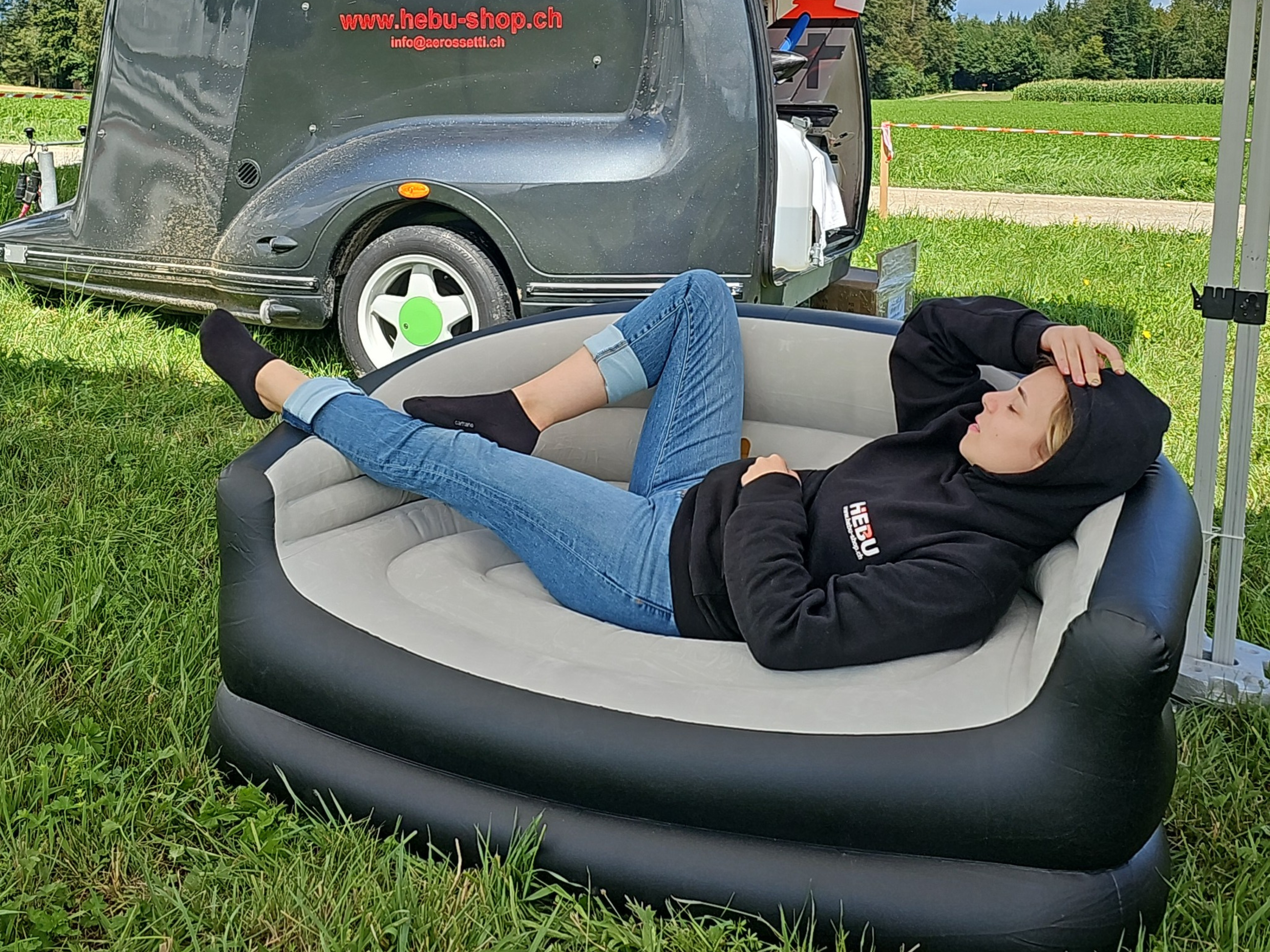 Sei es an einem Festival, auf dem Modellflugplatz, bei einem gemütlichen Ausflug ins Grüne oder einfach gemütliche Stunden zu zweit im eigenen Garten, dieses aufblasbare Sofa ist die perfekte Begleitung.