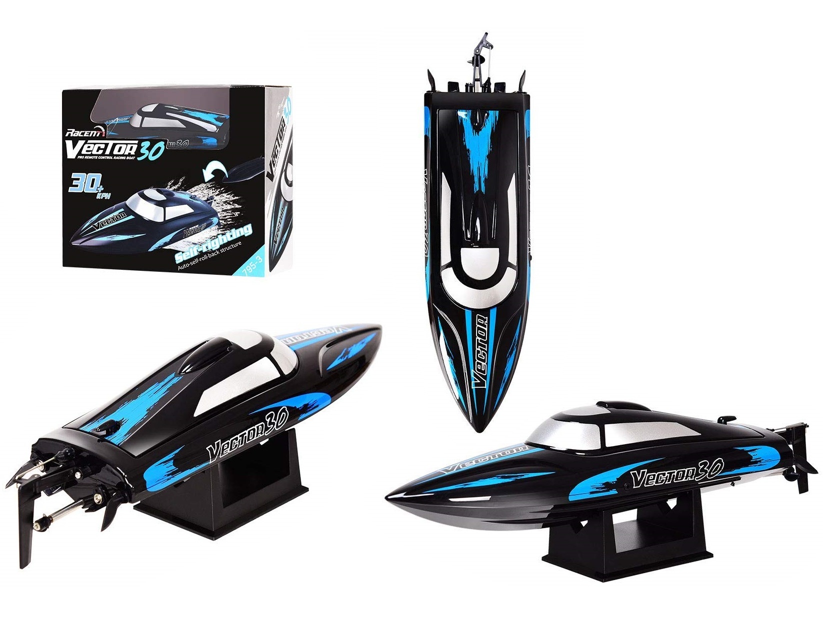 Dieses beinahe unsinkbare Boot kann einfach ins Wasser geworfen werden, es richtet sich automatisch wieder auf. Durch den Power-Antrieb erreicht das Boot eine Geschwindigkeit von bis zu 30km/h. Dank einem modernen 2.4Ghz Pistolen-Sender haben Sie den Vector immer voll im Griff!