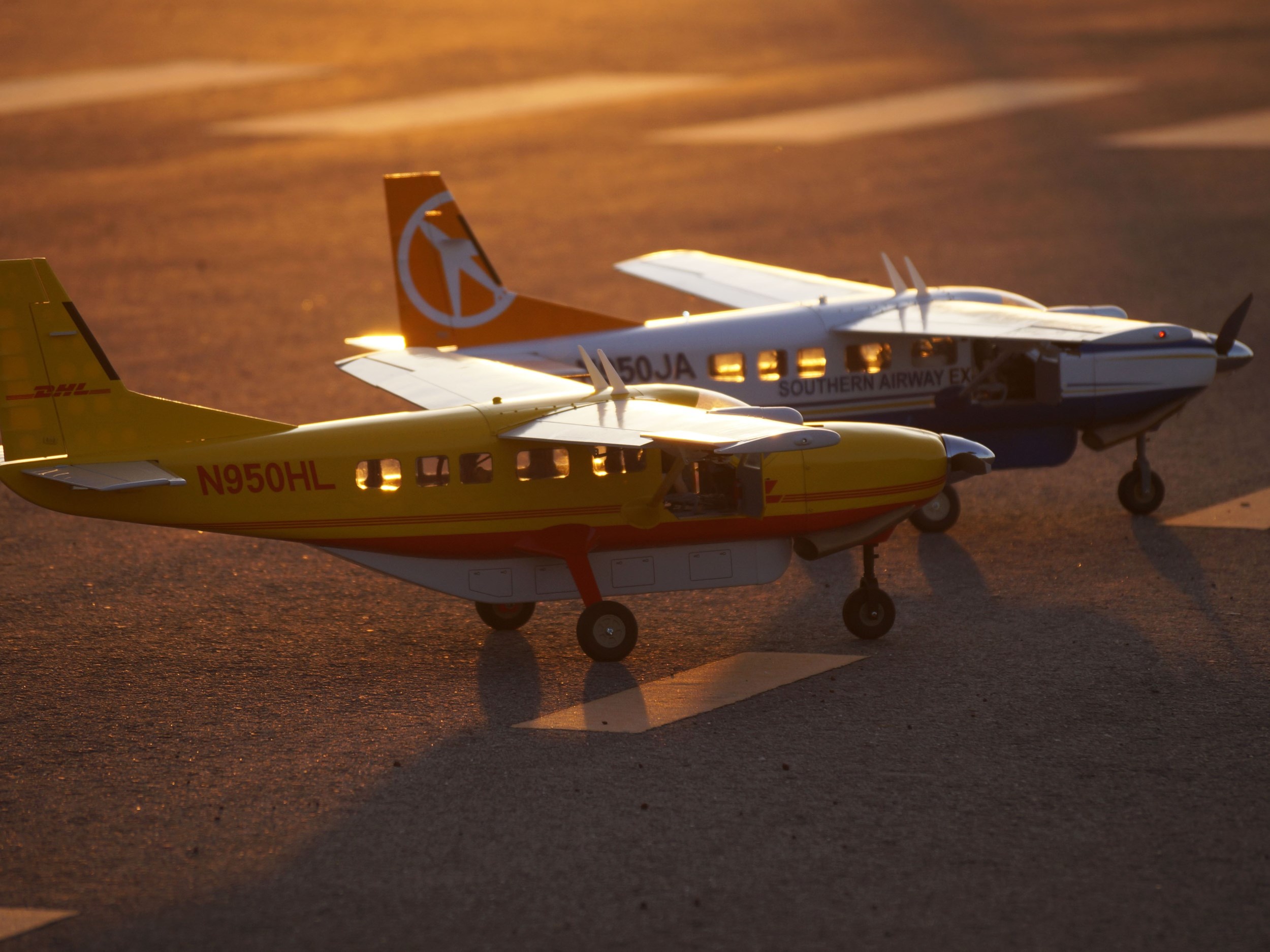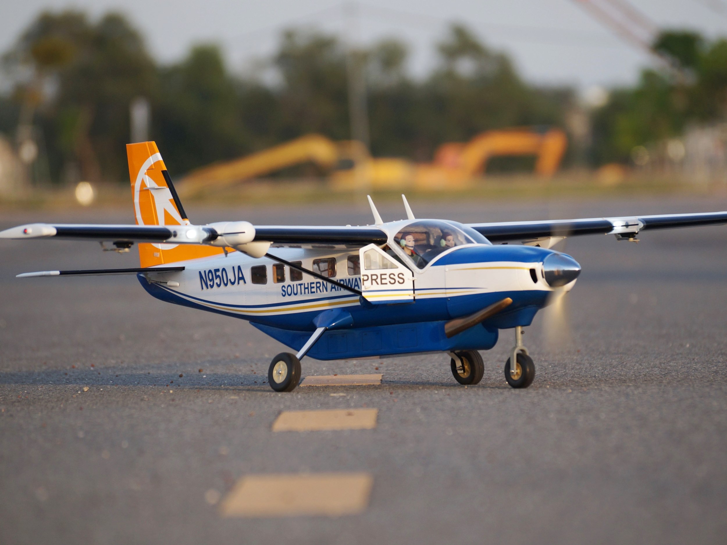 Die Cessna 208 Caravan ist im Original ein einmotoriges Turboprop Passagier- und Frachtflugzeug und wird auch gerne von Paketdiensten wie DHL für den Transport eingesetzt. Unser Modell der 208 Caravan ist eine detailfreudige Nachbildung des Originals und überzeugt durch viele Besonderheiten. Cockpit, Sitze und Pilotenpuppen werden übrigens auf modernen 3D Druckern hergestellt und im Werk handbemalt.