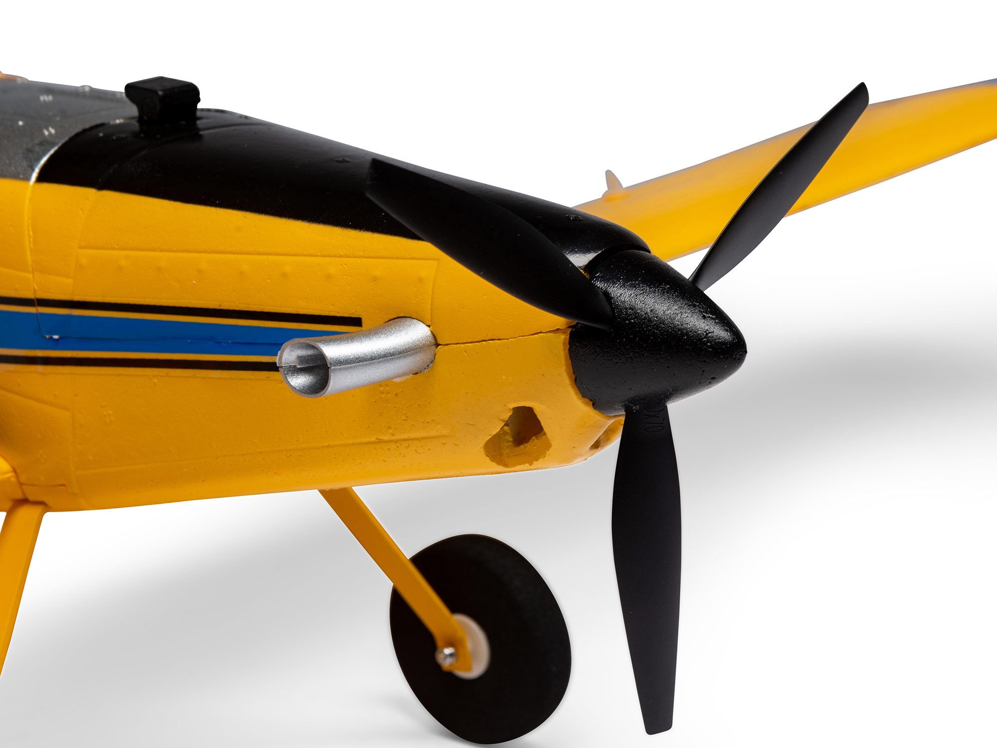 Air Tractor Agrar- und Nutzflugzeuge haben einen guten Ruf durch ihr gutmütiges Handling, unglaubliche Flugleistung und unübertroffene Vielseitigkeit erworben. Diese Eigenschaften liessen sich auf den E-flite UMX (Ultra Micro eXtreme) Air Tractor übertragen. Der speziell abgestimmte Motor und die 3-Blatt-Luftschraube sorgen mit 2S 280–300mAh LiPo-Akkus für fantastische Scale- und Kunstflugeigenschaften, oder du kannst einen 3S-Akku für mehr Leistung und unbegrenzte vertikale Steigleistung verwenden, ohne dass Änderungen oder Upgrades erforderlich sind. Funktionale Landeklappen verbessern die Langsamflugeigenschaften und bieten zudem hervorragende STOL-Fähigkeiten (Short Take Off and Landing). Und aufgrund seiner praktischen Ultra-Micro-Grösse kann er an mehr Orten und kleineren Räumen geflogen werden – einschliesslich vieler Höfe, Parks und Sportplätze, während die übergrossen Räder es ihm ermöglichen, von Kies- und sogar Grasflächen zu starten. Die werkseitig aufgebrachte und vollständig lackierte Oberfläche bietet eine hervorragende Sichtbarkeit sowie ein auffälliges, vorbildgetreues Aussehen, das durch LED-Navigations-, Strobe- und Landebeleuchtung noch hervorgehoben wird. Das Beste ist, dass das Modell zu 100% werkseitig montiert und flugbereit geliefert wird, und die Box perfekt für eine sichere und bequeme Aufbewahrung und den Transport des Modells geeignet ist.