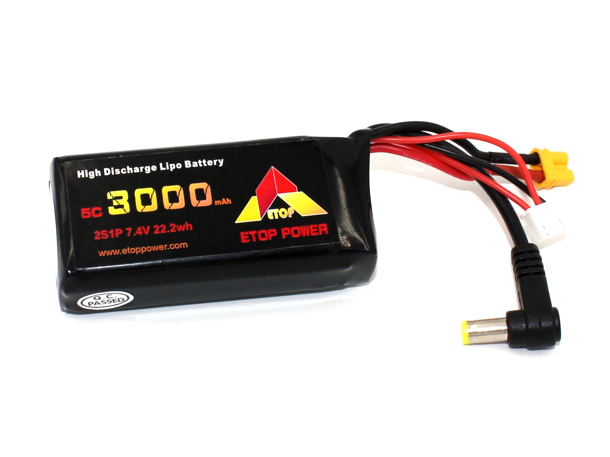 ETOP – LiPo Akku 2S/7.4V, 3000mAh – DC 5.5mm zu Skyzone