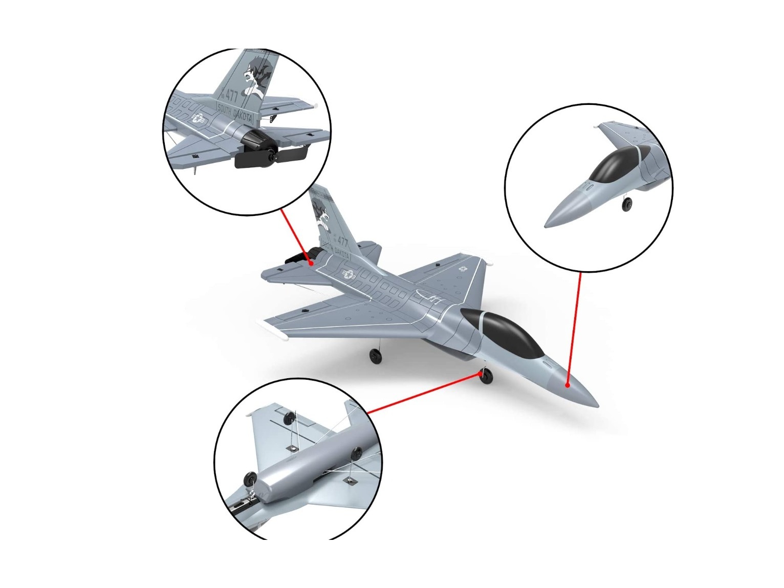 Dieser kleine Warbird wird als RTF-Komplett-Set angeboten. Der Motor und die komplette Elektronik sind bereits verbaut oder installiert. Weiter gehören auch der Akku, die RC-Anlage und ein 6-Achsen-Gyro zum Lieferumfang. Dank des integrierten 6-Achs-Gyro fliegt dieses Modell sehr ruhig und kann auch von Piloten mit wenig Erfahrung gut kontrolliert werden.