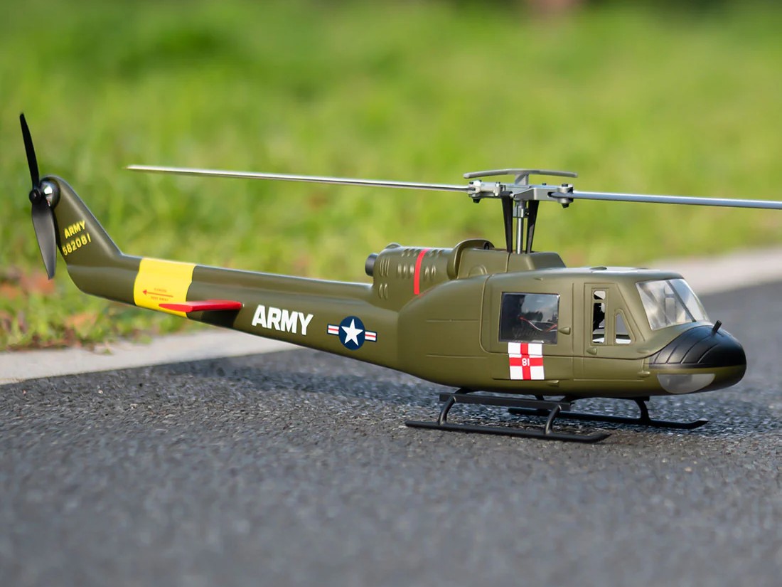Der FLY WING Huey ist eine hochdetaillierte Scale-Nachbildung des legendären Bell UH-1 Iroquois, besser bekannt als „Huey“. Dieser Helikopter wurde als einer der ikonischsten Militärhubschrauber der Geschichte bekannt und spielte eine zentrale Rolle in zahlreichen Konflikten, insbesondere im Vietnamkrieg.