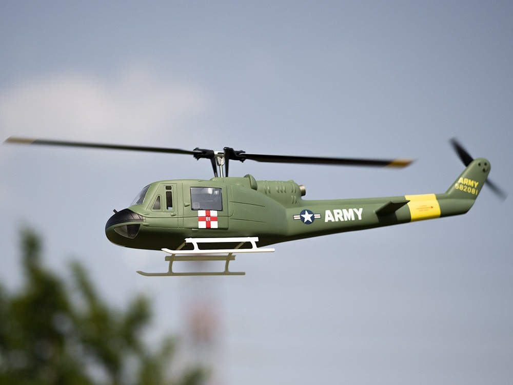 Mit seinem leistungsstarken Brushless-Motor, präzisen GDW-Servos und der servicefreundlichen Mechanik liefert der Huey eine herausragende Flugstabilität und exakte Steuerung. Der leistungsstarke Heckmotor sorgt für eine besonders stabile Hecklage, selbst bei schnellen Manövern. Ein besonderes Highlight ist die abnehmbare Haube, die einen einfachen Zugang zur Elektronik ermöglicht und den Akkutausch erleichtert.