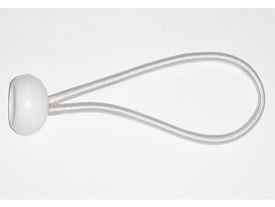 Bei diesem handelt es sich um Bungee’s mit einer robusten Plastikkugel als Abschluss. Die Schlaufe ist ca. 7 cm lang und dient zum Befestigen der Gibelseiten an der Dachplane der HEBU-Tent PVC-Zelte.