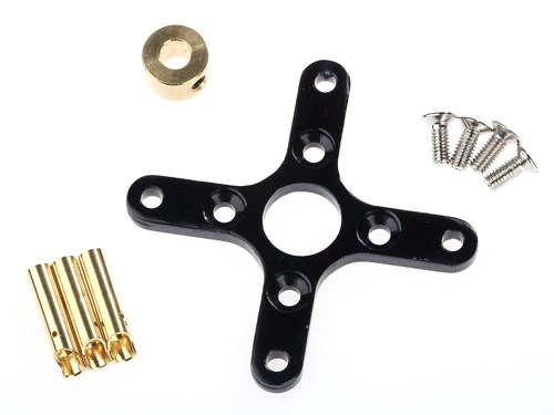 Die Auslieferung erfolgt mit Motorhalter, Propelleradapter für 4mm Welle und Anschlusssteckern 3.5mm, jedoch ohne Spinner.
