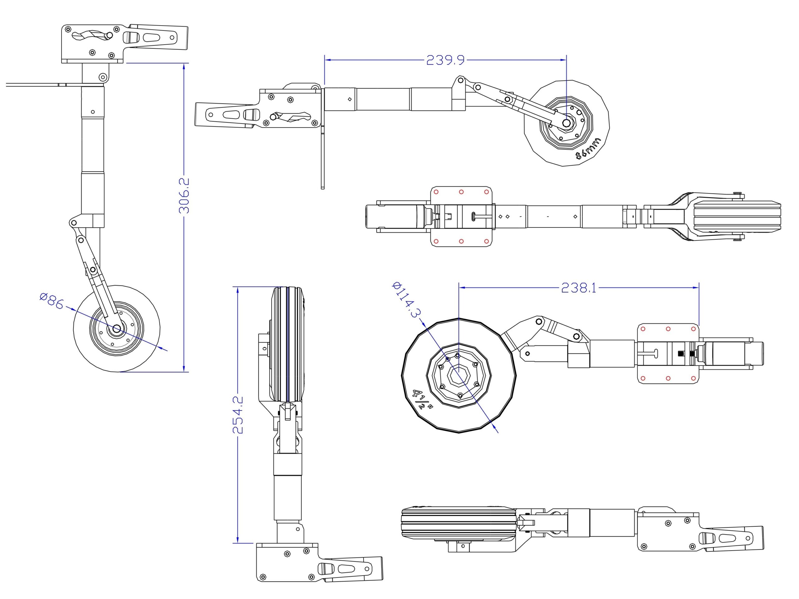 Beinlänge ab Modul bis Radachse: 306.2mm