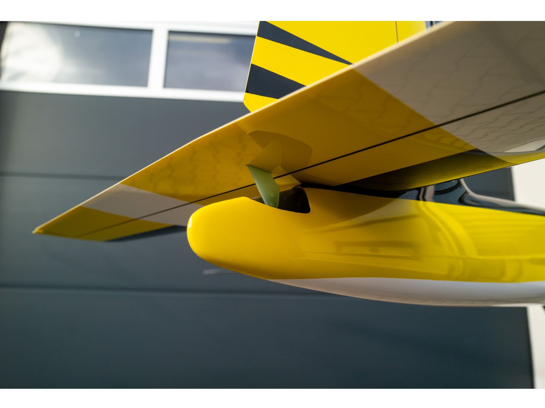 Das Modell wird in einem hohen Vorfertigungsgrad geliefert, alle Ruder sind fertig angeschlagen und als elastic-flaps mit Spaltabdeckungslippen an der Tragfläche ausgeführt. Die Flächen- und Leitwerksverschraubungen sind fertig hergestellt, die Ruderhörner bereits verklebt, und die Servohalterungen sind teilweise eingebaut b.z.w. liegen als Frästeile einbaufertig bei. Das Cockpit ist fertig gebaut mit Sitzwanne und Instrumentenpilz, die Kabinenhaube fertig aufgezogen und mit der Halterung versehen.